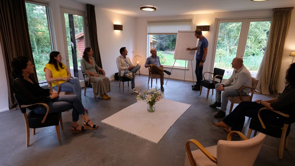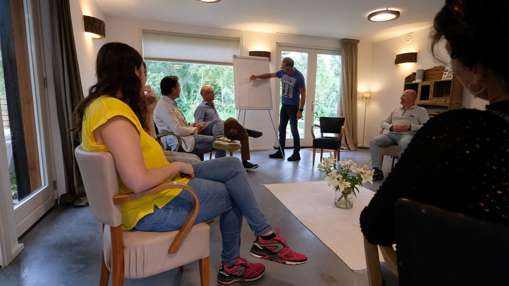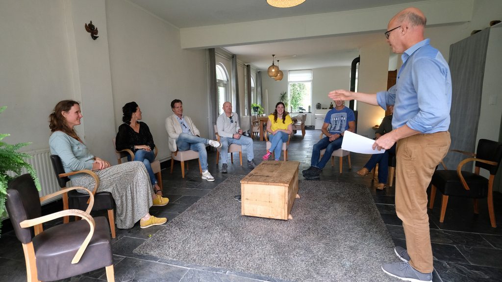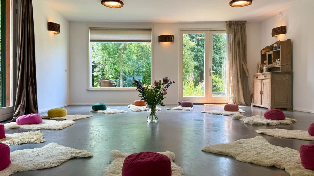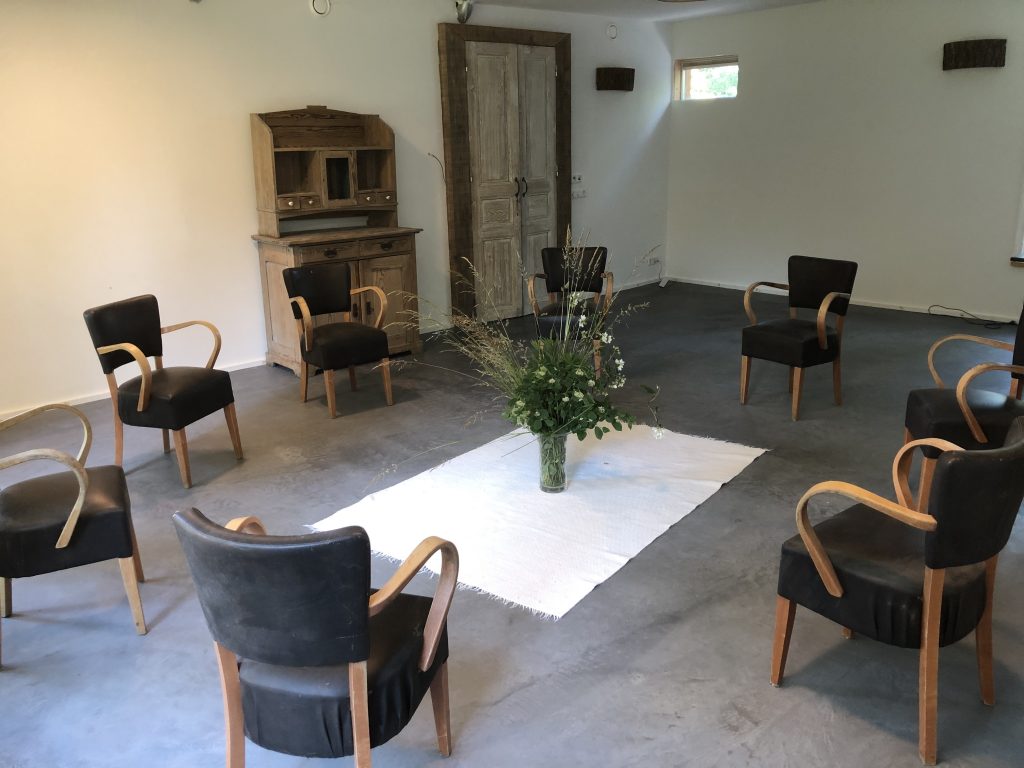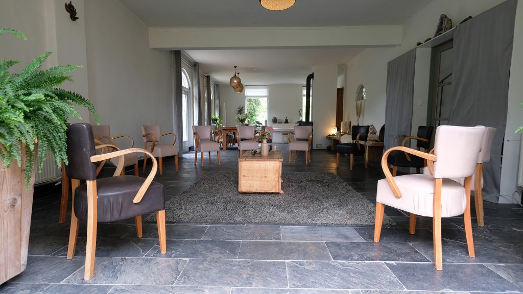 Huiselijk, warm en direct vertrouwd. De benedenverdieping van onze witte boerderij laat mensen snel landen. Gastvrijheid voel je hier meteen—fijn voor training, coaching of verdieping.