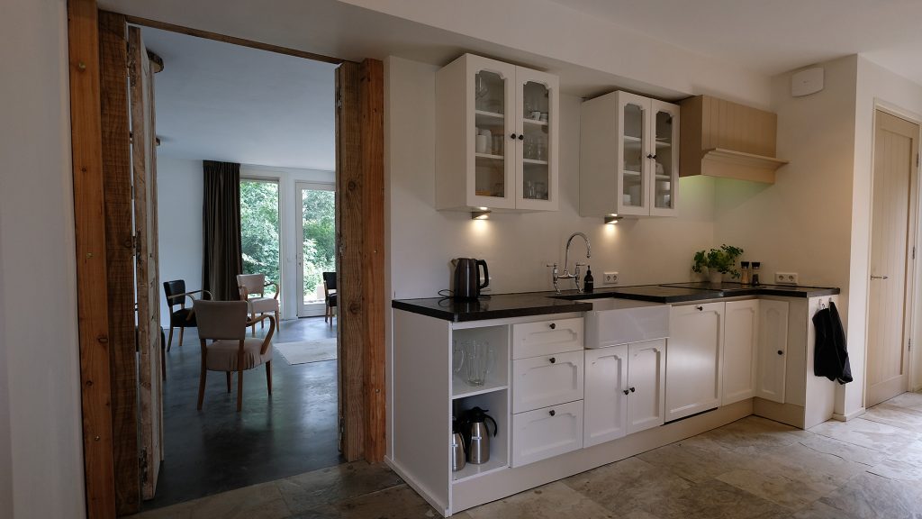 Twee karaktervolle ruimtes, allebei met eigen keuken. Flexibel inzetbaar: één als workshopruimte en de andere voor lunch/diner, of juist als subruimte—wat jouw programma nodig heeft.