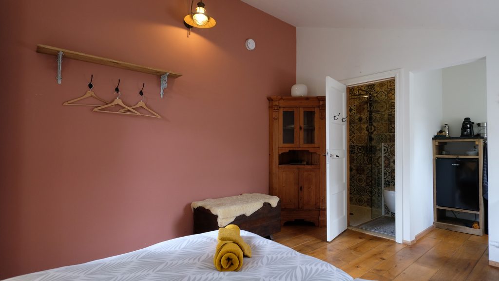 Op ons erf vind je tot 24 comfortabele slaapplekken, verspreid over meerdere gebouwen. De comfort kamers hebben een eigen badkamer—rust, privacy en alles binnen handbereik. Dit zijn in totaal 13 bedden.